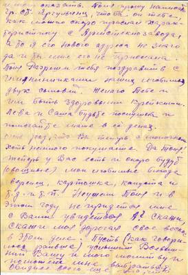 65. Письмо Цыганова К.А. от 13.06.1944 из пос. Красный Камень, г. Нижний Тагил Свердловской области, сыну Цыганову Л.К. о полученном письме, о неосуществленном желании послать свой портрет к дню рождения сына - из-за высокой цены, требуемой художником, и с поздравлениями с наступающим 12 июля днем рождения.