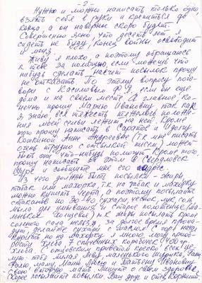 36. Письмо Цыганова К.А. от 01.02.1943 из г. Нижнего Тагила Свердловской области жене Цыгановой А.И. в Н.-Пестровку Пензенской области об отсутствии от нее писем, об этапировании 28.10.1942 и о прибытии 05.12.1942 в Тагиллаг НКВД, о работе на стройке арматурщиком, о том, насколько его положение в пензенской тюрьме было лучше, о своих тревоге за семью и о продуктах, которые нужны особенно остро; с припиской «Получено 08.03.1943 в 12 часов дня в понедельник».