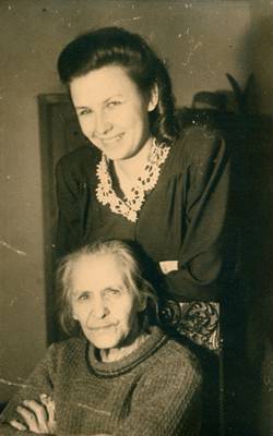 5. Фотография Мягковой (Тимофеевой) Ф.Я. (сидит) с внучкой Полоз Р.М., 1948 г.